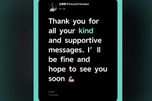 今天,奥斯卡再度在个人社媒报平安,他写道:感谢球迷们发来的祝福与留言。请放心,我没事的,也希望早些见到大家。